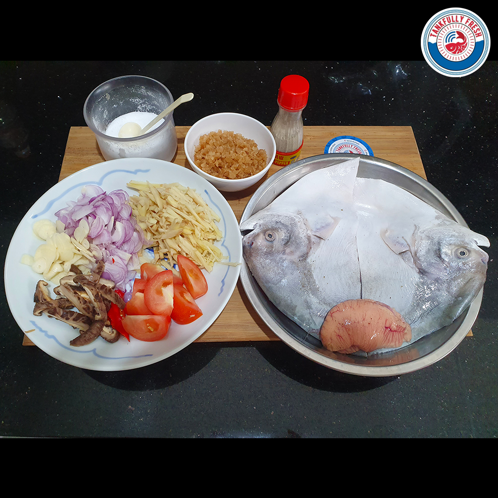 A simple home cook recipe of Steam Chinese Pomfret with Preserved Radish by Tankfully Fresh! Let us share one of our Fisherman's Wife Seafood Recipes with you! Enough for 3-4pax. Do share this if you find this recipe useful. Spread the love for seafood!